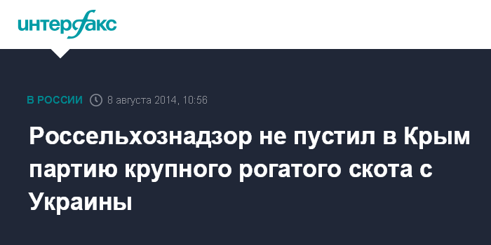 Москва. 8 августа. INTERFAX.RU - Россельхознадзор запретил ввоз партии крупного рогатого скота в Крым с Украины.