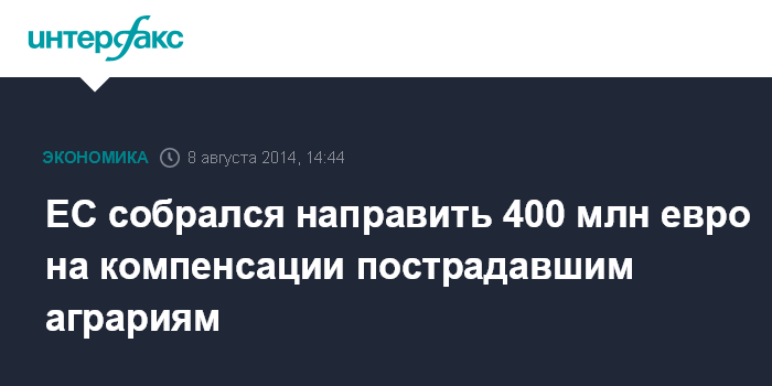 ЕС собрался направить 400 млн евро на компенсации пострадавшим аграриям