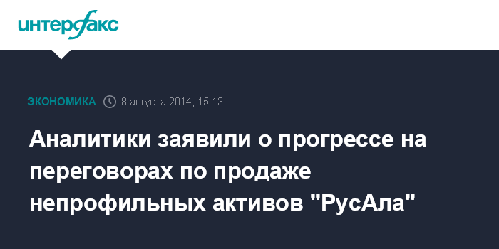 Москва. 8 августа. INTERFAX.RU - Переговоры по продаже непрофильных активов ОК "РусАл" находятся на продвинутой стадии, говорится в сообщении БКС по итогам встречи с представителями компании.