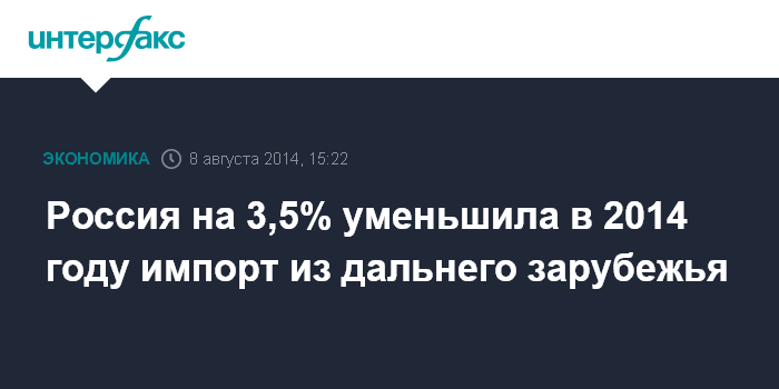 Ранее сообщалось, что импорт в Россию товаров из стран дальнего зарубежья за 1-е полугодие 2014 года составил $125 млрд 588,9 млн, что было на 3,4% меньше соответствующего показателя 2013 года.
