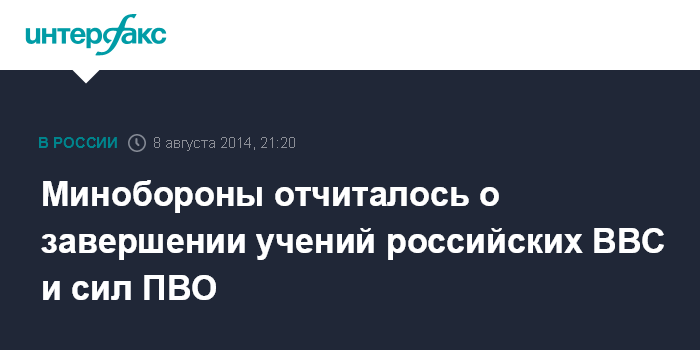 Москва. 8 августа. INTERFAX.RU - Командно-штабные учения ВВС и сил противовоздушной обороны, которые проходили на территории России с 4 августа, завершены, сообщили в Минобороны РФ.
