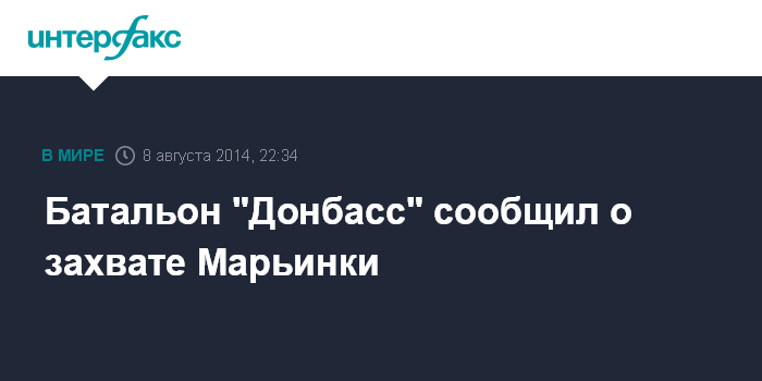 Москва. 8 августа. INTERFAX.RU - Марьинка - пригород украинского Донецка - взята под контроль армией и добровольческими отрядами. Об этом сообщается в фейсбуке батальона "Донбасс".