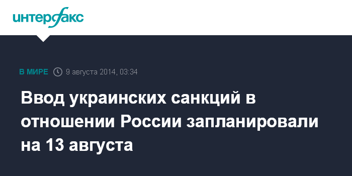 Ввод украинских санкций в отношении России запланировали на 13 августа