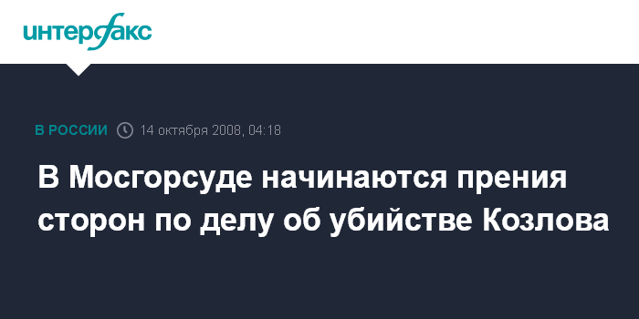 Москва. 14 октября. ИНТЕРФАКС - Мосгорсуд приступает к прениям сторон по делу об убийстве первого зампредседателя ЦБ РФ Андрея Козлова.
