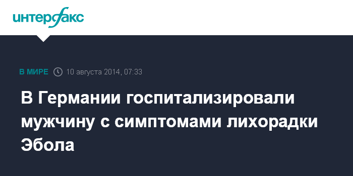Москва. 10 августа. INTERFAX.RU - 28-летний мужчина госпитализирован в Германии с симптомами, характерными для лихорадки Эбола, сообщает Bild.