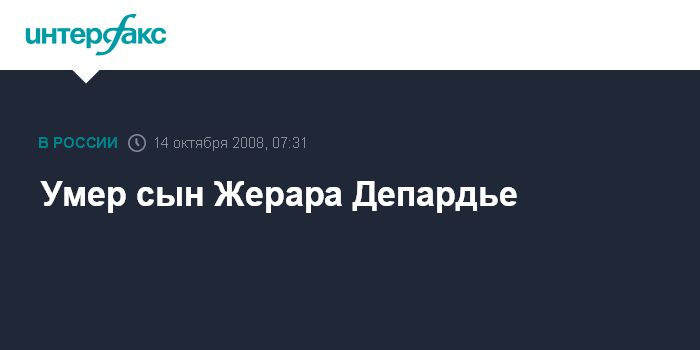 Париж. 14 октября. ИНТЕРФАКС - Сын Жерара Депардье французский актер Гийом Депардье скончался в возрасте 37 лет от пневмонии, передала британская корпорация Би-Би-Си.