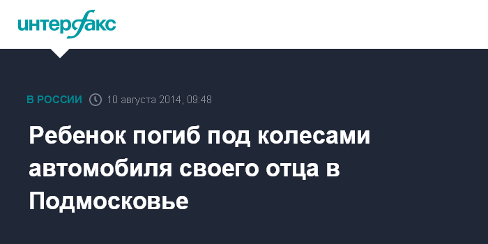 Москва. 10 августа. INTERFAX.RU - Четырехлетний ребенок погиб под колесами автомобиля своего отца в дачном поселке в Солнечногорском районе Подмосковья, сообщил "Интерфаксу" источник в правоохранительных органах в воскресенье.