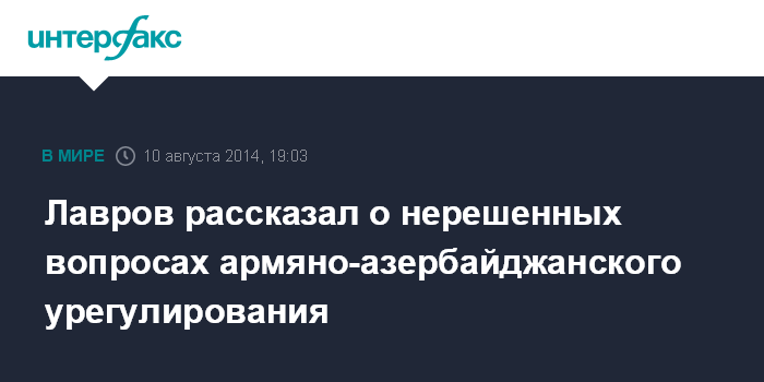 Москва. 10 августа. INTERFAX.RU - Подавляющая часть практических аспектов армяно-азербайджанского урегулирования согласована, но главные вопросы еще не решены, сообщил журналистам министр иностранных дел России Сергей Лавров в воскресенье по окончании трехсторонней встречи глав России, Армении и Азербайджана.