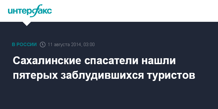 Москва. 11 августа. INTERFAX.RU - Пятерых туристов из Москвы, заблудившихся в горах в Долинском районе Сахалина, спасатели нашли в ночь на воскресенье.