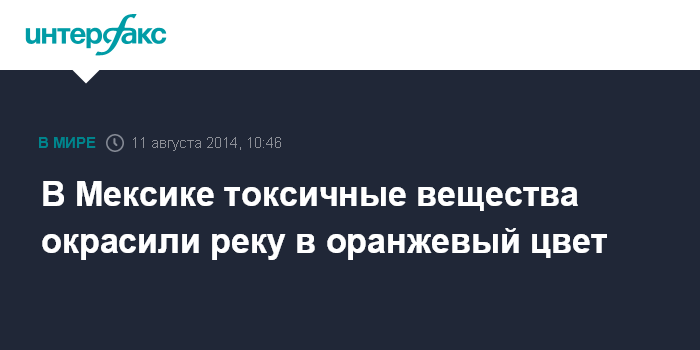 Москва. 11 августа. INTERFAX.RU - Утечка химикатов из шахты произошла на северо-западе Мексики, серьезно загрязнив воду из местной реки, заявили в понедельник журналистам власти страны.