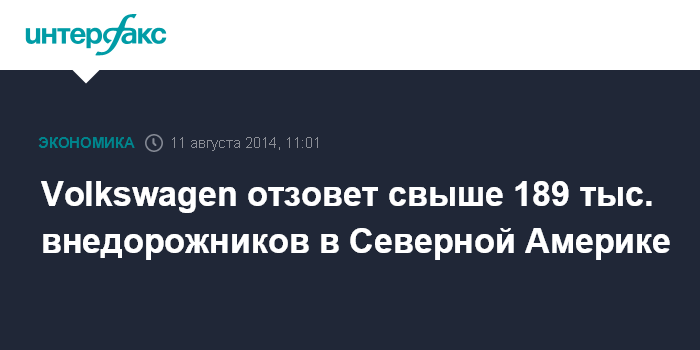 Москва. 11 августа. INTERFAX.RU - Германский Volkswagen AG объявил об отзыве 189,49 тыс. внедорожников Tiguan в Северной Америке, сообщает MarketWatch. Это решение затрагивает машины, выпущенные с 2009 по 2014 год.
