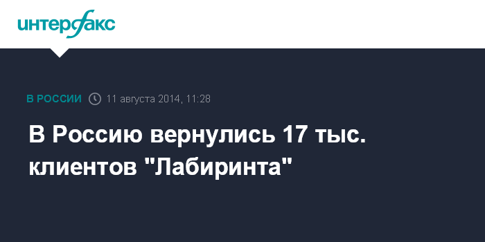 В Россию вернулись 17 тыс. клиентов "Лабиринта"
