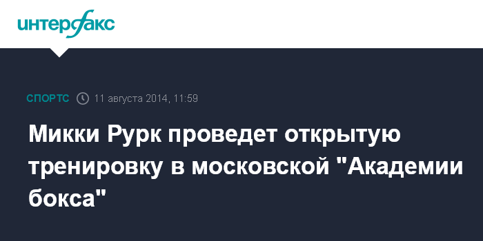 Москва. 11 августа. INTERFAX.RU - Знаменитый актер Микки Рурк проведет открытую тренировку в "Академии бокса" в Лужниках, сообщает Федерация бокса России.