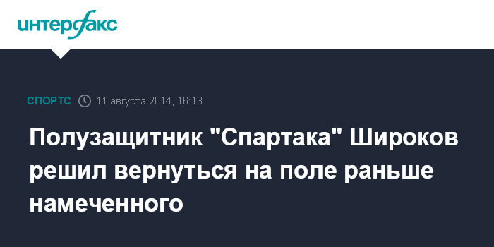Москва. 11 августа. INTERFAX.RU - Полузащитник футбольного клуба "Спартак" (Москва) Роман Широков, восстанавливающийся от травмы ахилла, заявляет, что, скорее всего, вернется на поле раньше, чем прогнозировалось.