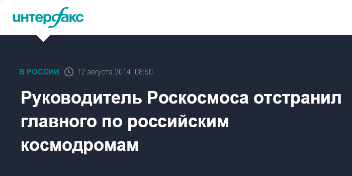 Москва. 12 августа. INTERFAX.RU - Глава Роскосмоса Олег Остапенко отстранил от должности Сергея Лазарева, исполняющего обязанности гендиректора ФГУП "Центр эксплуатации наземной космической инфраструктуры" (ЦЭНКИ) — эксплуатанта российских космодромов. Об этом сообщают "Известия" со ссылкой на самого Лазарева.