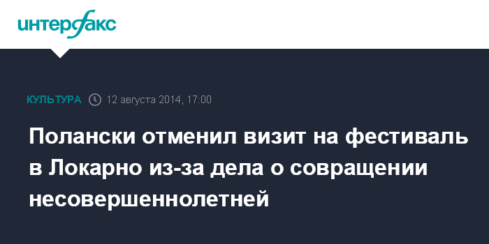 Полански отменил визит на фестиваль в Локарно из-за дела о совращении несовершеннолетней