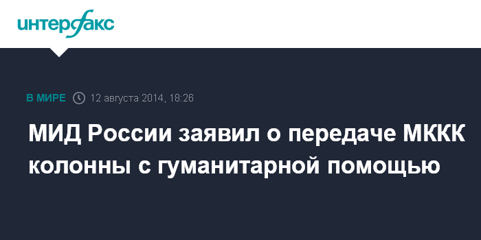 МИД России заявил о передаче МККК колонны с гуманитарной помощью
