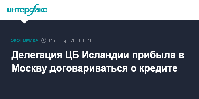 Москва. 14 октября. INTERFAX.RU - Делегация представителей Центрального банка Исландии прибыла в Москву для переговоров в Минфине РФ по вопросу о предоставлении Рейкъявику стабилизационного кредита на 4 млрд евро.