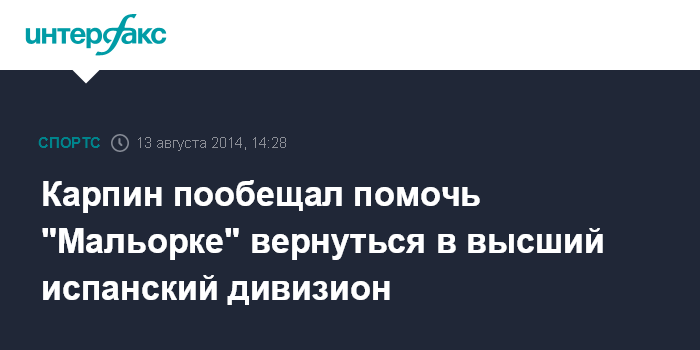 "Хочу поблагодарить "Мальорку" за оказанное доверие. Я хотел вернуться в Испанию, и клуб предоставил мне такую возможность. На данном этапе ситуация в команде не кажется такой уж простой. Нужно укрепляться. Но я уверен, что в итоге "Мальорка" будет бороться за выход в примеру", - приводит радио Deportes Cope Mallorca слова Карпина, представление которого проходит в среду в клубе.