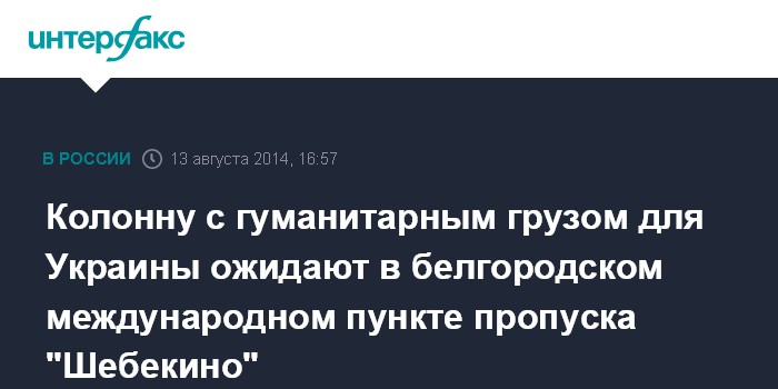 Москва. 13 августа. INTERFAX.RU - Как ожидается, колонна с гуманитарной помощью для юго-восточных регионов Украины прибудет в международный пункт пропуска "Шебекино" в Белгородской области.