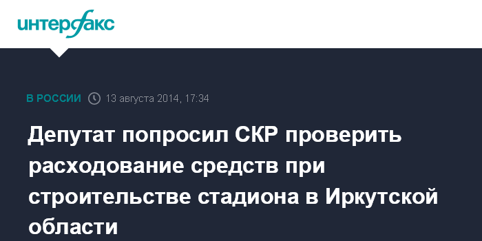 Депутат попросил СКР проверить расходование средств при строительстве стадиона в Иркутской области