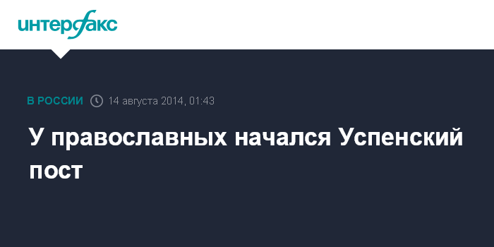 Москва. 14 августа. INTERFAX.RU - Успенский пост, который длится в течение двух недель, начинается 14 августа у православных верующих.