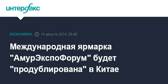 Москва. 14 августа. INTERFAX.RU - Китайская сторона в сентябре проведет международную торгово-экономическую ярмарку параллельно с выставкой "АмурЭкспоФорум" в Амурской области, что позволит сопредельным территориям обменяться делегациями представителей бизнеса.