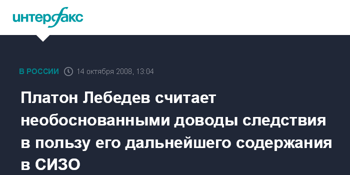 Чита. 14 октября. INTERFAX.RU - Бывший руководитель МФО "МЕНАТЕП" Платон Лебедев считает, что все доводы, предъявленные следствием суду для продления ему срока содержания под стражей в СИЗО Читы не обоснованы.