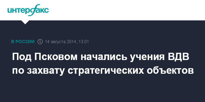 Москва. 14 августа. INTERFAX.RU - Отработкой тактических действий по захвату стратегически важных объектов условного противника занимаются бойцы ВДВ в рамках проходящего в Псковской области дивизионного командно-штабного учения с Псковским десантно-штурмовым соединением Воздушно-десантных войск.