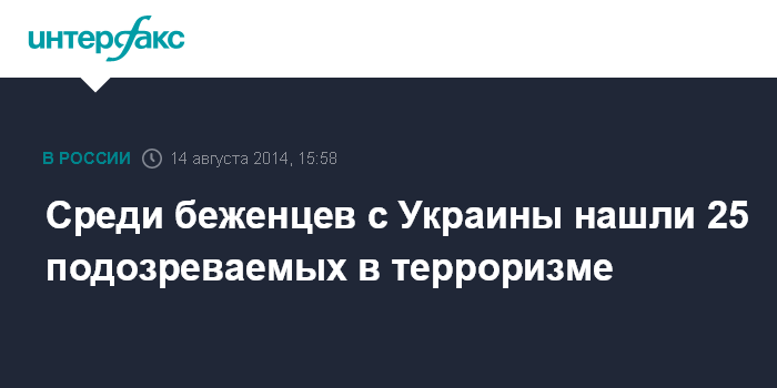 Москва. 14 августа. INTERFAX.RU - Полицейские с начала года выявили среди прибывших с Украины беженцев 25 человек, подозреваемых в терроризме, заявили в МВД.