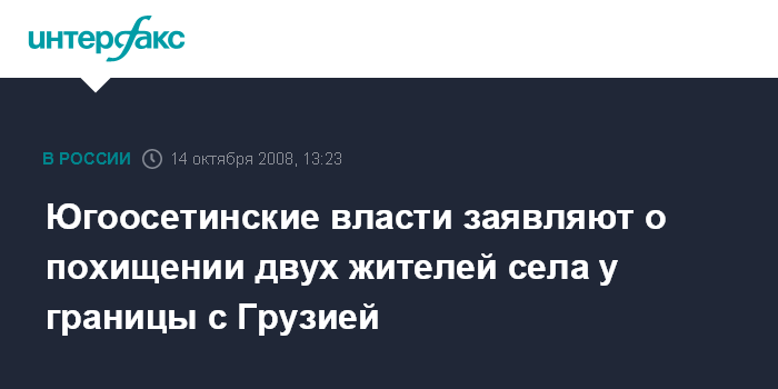 Москва. 14 октября. INTERFAX.RU - В Цхинвали заявляют о похищении двух жителей осетинского села, располагающегося вблизи границы с Грузией.