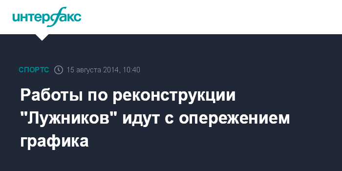 Москва. 15 августа. INTERFAX.RU - Работы по реконструкции Большой спортивной арены "Лужники", которая должна стать главным стадионом чемпионата мира по футболу в 2018 году, идут с опережением графика, согласованного с Международной федерацией футбола, сообщил "Интерфаксу" в пятницу заместитель мэра Москвы по вопросам градостроительной политики и строительства Марат Хуснуллин.