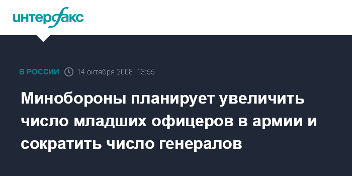 Минобороны планирует увеличить число младших офицеров в армии и сократить число генералов