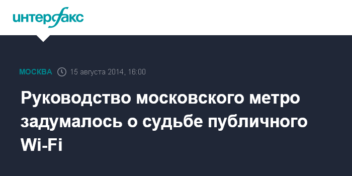Москва. 15 августа. INTERFAX.RU - Руководство московского метро на следующей неделе определится с судьбой публичного Wi-Fi, учитывая введенный недавно запрет на анонимное подключение к общественному беспроводному интернету. Об этом заявил начальник Московского метрополитена Дмитрий Пегов.