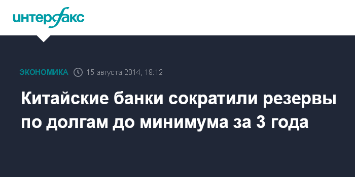 Китайские банки сократили резервы по долгам до минимума за 3 года