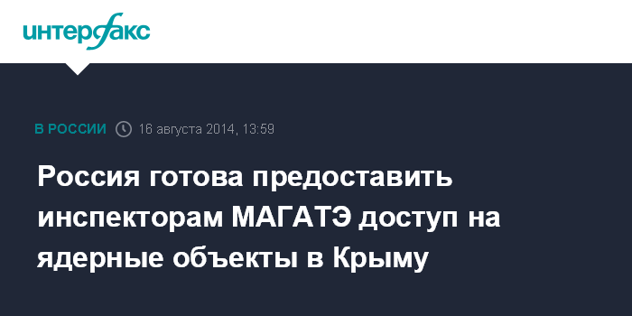 Москва. 16 августа. INTERFAX.RU - В Москве заявили о готовности предоставить МАГАТЭ возможность инспектировать ядерные объекты в Крыму.