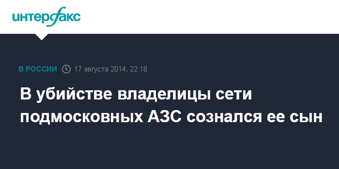 Москва. 17 августа. INTERFAX.RU - Сын владелицы крупной сети подмосковных АЗС в ходе допроса сознался в убийстве матери и сестры. Об этом сообщили в пресс-службе Следственного комитета.