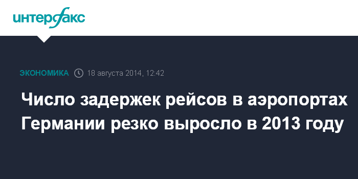Москва. 18 августа. INTERFAX.RU - Число авиарейсов в пяти крупнейших аэропортах Германии, вылет которых был отменен или их опоздание превысило три часа, в 2013 году выросло на 12% по сравнению с предыдущим годом - до 28 тыс. 115, передает Deutsche Welle. Заложниками ситуации стали 4,8 млн пассажиров.