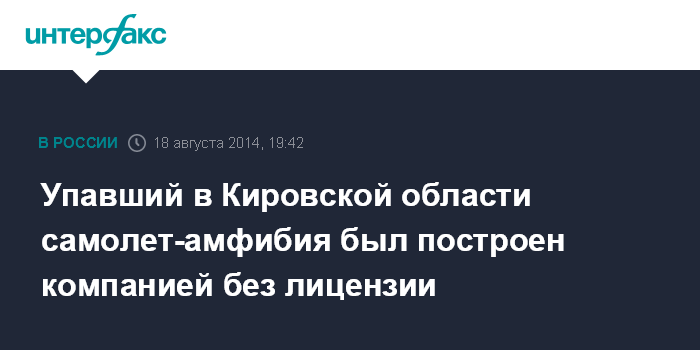 Упавший в Кировской области самолет-амфибия был построен компанией без лицензии