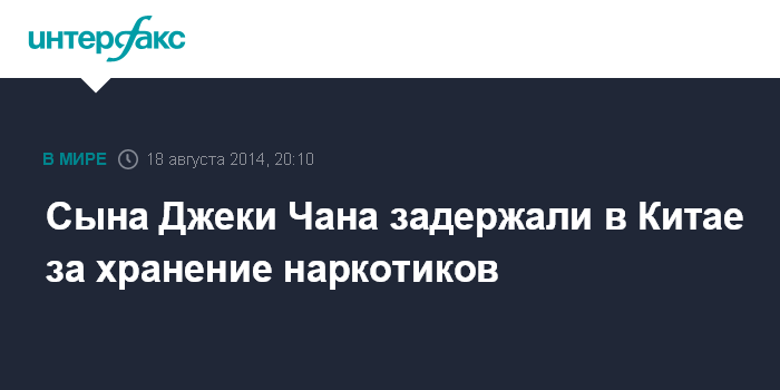 Москва. 18 августа. INTERFAX.RU - Сотрудники полиции Китая задержали сына известного киноактера Джеки Чана, актера и певца Джейси Чана, за хранение наркотиков, сообщают в понедельник китайские СМИ.