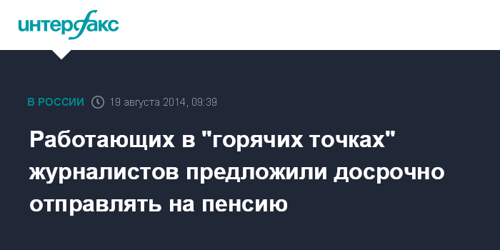 Работающих в "горячих точках" журналистов предложили досрочно отправлять на пенсию