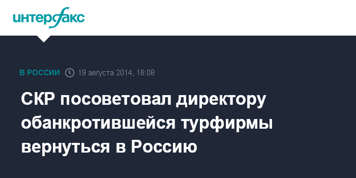 СКР посоветовал директору обанкротившейся турфирмы вернуться в Россию