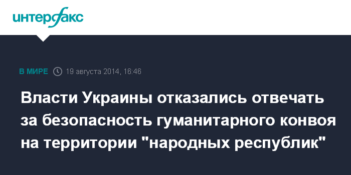 Москва. 19 августа. INTERFAX.RU - Украина готова предоставить гарантии безопасности российской автоколонне с гуманитарной помощь на территории, которая подконтрольна ее военным, заявили в украинском МИД.
