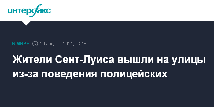 Москва. 20 августа. INTERFAX.RU - В американском Сент-Луисе собралась разгневанная толпа местных жителей, недовольных убийством чернокожего офицерами полиции, сообщила газета The Telegraph.