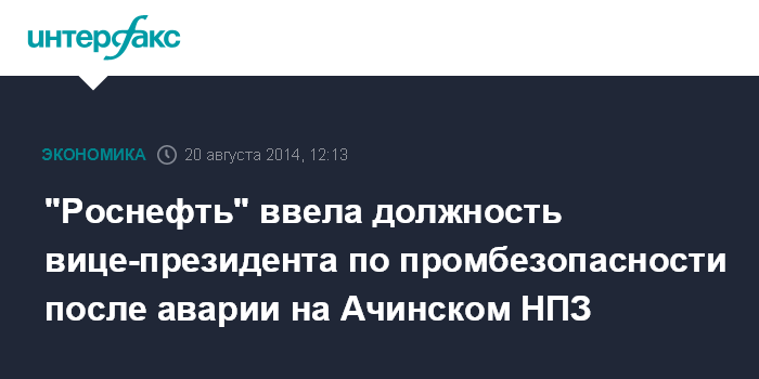 "Мы обратимся в совет директоров. Думаю, что эти события позволяют нам сделать предложение и ввести должность вице-президента по промышленной безопасности. Сейчас есть такой вице-президент, но он занимается также и вопросами энергетики. В данном случае мы считаем, что должен быть чистый зам по промышленной безопасности", - заявлял Сечин.