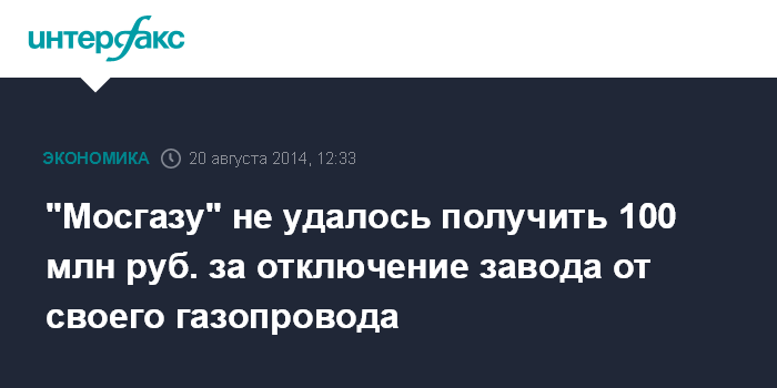 "Мосгазу" не удалось получить 100 млн руб. за отключение завода от своего газопровода