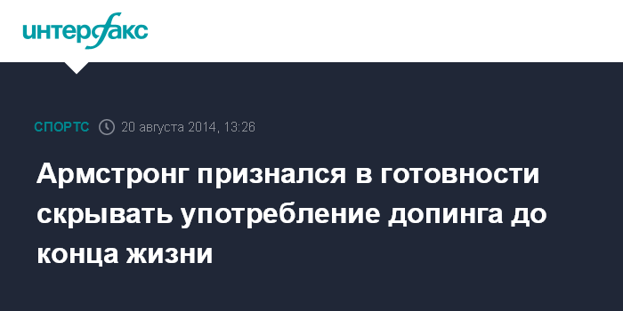 Москва. 20 августа. INTERFAX.RU - Американский экс-велогонщик Лэнс Армстронг, который был лишен всех титулов за употребление допинга, признался, что сам никогда не рассказал бы о том, что применял запрещенные препараты во время своей спортивной карьеры.