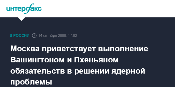 Москва приветствует выполнение Вашингтоном и Пхеньяном обязательств в решении ядерной проблемы