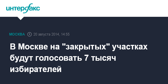 Москва. 20 августа. INTERFAX.RU - Количество избирателей на "закрытых участках" составляет 7 тыс. человек, заявил глава Мосгоризбиркома Валентин Горбунов.