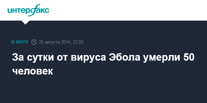 Москва. 20 августа. INTERFAX.RU - Число людей, умерших от заражения вирусом лихорадки Эбола, выросло до 1350. Об этом сообщает Всемирная организация здравоохранения (ВОЗ). 19 августа сообщалось, что количество жертв заболевания составило 1299 человек.